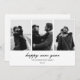 add 3 of your favourite photos on that new year's holiday card in simple minimalist black and white style and chic typography followed by family's or couple names and year in front side then your kind message in back.