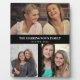 Lovely arrangement of four family photos collage divided in 3 sections with a landscape horizontal black rectangle frame on the top side and two portrait vertical rectangle frames on the right side with a texts on the lower side. Personalise it with your own photos and texts. Perfect a custom made gift for your loved ones.
