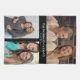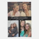 Lovely arrangement of four family photos collage divided in 3 sections with a landscape horizontal black rectangle frame on the top side and two portrait vertical rectangle frames on the right side with a texts on the lower side. Personalise it with your own photos and texts. Perfect a custom made gift for your loved ones.