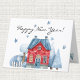 Whimsical winter house and minimal matching graphics decorate this Happy New Year greeting card. Easily change or remove text on front, inside and back to make it yours. Use the simple Template provided to make changes. White envelope is included or mark "none" for reduced price. Also available in 5"x7" size. Highly rated and excellent print quality. See "About This Product" at side for more information.