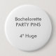 Custom 4" Huge, Very Large, Big Round Bachelorette Party Pin for bride, bridesmaids, mother-of-the-bride names, jokes, fun at the bridal shower, bechelorette night, weekend or party, or wedding to fully personalise. Create your own, make your own, design your own, upload your own photo, design, or use multi font text to customise.