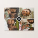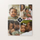 Custom 4 Photo Collage Family Monogram | Black Jigsaw Puzzle