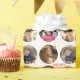 Custom wrapping paper personalized with a photo collage with 4 of your favorite photos and Merry typography.