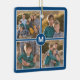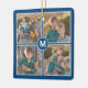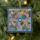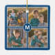 Custom 4 Photo Collage with Monogram on Blue Ceramic Ornament