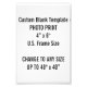 Custom 4" x 6" Photo Print Blank Template. A standard picture frame size in the U.S.A. Portrait 4R (KG - Japan Size Code) 4" × 6" (10.2 × 15.2cm); 3:2 (1.5); 1200 x 1800 - standard 135 film & print size in US, Canada, Australia, the Philippines, and India. Called "10 × 15 cm" worldwide. Design Your Own. Add words, text and personalise.