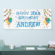 Celebrate a milestone birthday with our personalised birthday banner, designed to add a special touch to your festivities. Crafted from high-quality materials, this vibrant banner can be customised with names, dates, and unique messages, making it a memorable centerpiece for your celebration. Perfect for indoor or outdoor use, it effortlessly enhances the party atmosphere while honouring the guest of honour's remarkable journey.