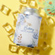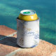 An elegant can cooler that features a delicate watercolor floral design in shades of blue with complementing hues of gold that will give a sense of maturity and elegance to a 70th birthday celebration. The floral pattern is crafted in an elegant, script-like style. The occasion, age and honoree's name can all be customised.