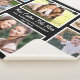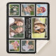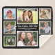 A custom 8 photo collage keepsake blanket for that perfect gift. Personalise with eight photos of family, pets, memories, special occasions, your photography, etc. in white frames and add one or two lines of text in simple white script and typography against a black background. The colours of the background, photo frames and text can be changed by editing in the design tool.