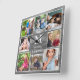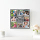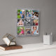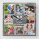 Custom 8 Photo Collage Family Monogram Gray Wood Square Wall Clock