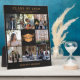 Stylish modern luxury elegant graduate's name, class of year, and school personalised graduation plaque featuring a faux metallic gold copper graduation cap topper, and 8 custom photos over a black leather like (PRINTED TEXTURE) background.