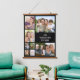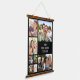 A custom photo collage hanging tapestry that you can personalise with nine photos of family, pets, memories, events, your photography, etc. and add two or three lines of text in simple white typography against a black background. The colours of the background and text can be changed by editing in the design tool.