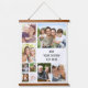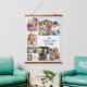 A custom photo collage hanging tapestry that you can personalise with nine photos of family, pets, memories, events, your photography, etc. and add two or three lines of text in simple typography. The colours of the background and text can be changed by editing in the design tool.