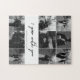 Custom 9-Photo Couple 1 Year Anniversary Jigsaw Puzzle. A modern and minimalistic personalised jigsaw puzzle, designed with 9 custom photo slots, and a section in the middle for names, and a wedding date or other memorable date. Makes a perfect 1st anniversary gift idea for your husband, wife, boyfriend or girlfriend.