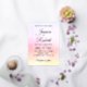Modern personalised wedding invitation featuring an abstract watercolor background in shades of soft purple, pink, orange and yellow with your custom text.