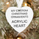 Custom printed personalised HEART ACRYLIC CHRISTMAS TREE ORNAMENT DECORATION Blank Template - 3" high x 2.8" wide x 0.187" thick. Design, create, make your own. Your photo, image, text, logo, graphics in full colour print on both side of the ornament, using the AcryliPrint®HD printing process. Made of ultra-durable acrylic.