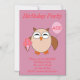 This awesome magnetic party invitation features a cute brown owl with big sleepy eyes. The owl is holding a pretty pale pink balloon and a bouquet of bright pink flowers wrapped in a pale pink cone.