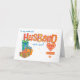 A brightly colored, 'word art' birthday card to customize with your husband's age. The front cover greeting is, 'To my wonderful HUSBAND with love!' and the word 'husband' is in large lettering, filled with striped, polka dot, dog tooth check and polka dot patterns in yellow, orange and red. Below the 'H' of 'husband' are three brightly colored gift boxes and below the final 'D' is a heart, on which you can write your husband's age. There is a sprinkling of tiny yellow hearts and stars on the white background and you can easily change the inside text or delete it if you prefer a 'blank inside' card.