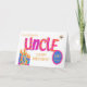A brightly colored birthday card for your uncle that you can customize with his age. The word, 'Uncle' is in huge letters, filled with vibrant purple, orange and shocking pink patterns and there is a row of striped candles in the bottom left corner as well as a large star in the top right corner. Most of the other lettering is in gold-effect and the whole front cover message is, 'To a fantastic Uncle, HAPPY BIRTHDAY!' and there is an oval frame where you can add his age. The inside message is just a suggestion and you can easily personalize it or delete it altogether if you prefer a 'blank inside' card.