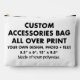 Custom personalised All Over Print Accessories Pouch Bag (Large 12" x 8.5") made of spun polyester. Design, create, make your own fully customised all-over print makeup bag. Print, cut and sew all-over-print producing edge-to-edge full colour print of your image, design, photo and text, such as a quote, your name or other wording. Allover print bags make a great gift for Christmas, a birthday or other special occasion, or for back to school, the gym, sports, a vacation, or for work.