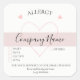 Keep your handmade products safe and professional with this customizable allergy advice label. Featuring a clean white background, black text, and a blush pink heart accent, this design includes space for your company name, product details, and a handy tick-list for common allergens such as gluten, nuts, dairy, and soya, plus an extra space for custom notes.