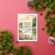 Turn the card over to reveal an artistic portrayal of an elegantly set wedding banquet table, gracing a balcony-verandah with breathtaking views. This thoughtful detail offers a glimpse of the refined beauty awaiting your guests, making the invitation as captivating as the day itself.