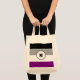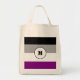 Tote Bag with asexuality (ace) pride flag with black, grey, white and purple striped pattern design with customisable monogram template design
