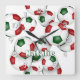 This soccer themed wall clock features the image of a cluster of varied size red, green & white soccer balls - customise with the athlete's name - by katz_d_zynes