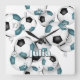 custom athlete name teal black soccer square wall clock