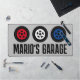 Custom automotive desk mat for garage or man cave. Personalise with your own text. Cool car wheel design with bold typography. Novelty gift idea for friends, family, boss, coworker, husband, dad, mechanic, driver etc. Manly decor for mancave, garage, office, repair shop, store etc. Colours can be changed.