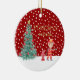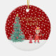A cute red firetruck Christmas keepsake is the perfect christmas decoration theme for a firefighter Christmas gift. It features your child's custom name, custom photo and the christmas year. You can edit all of the text. This one has a christmas theme with a traditional red and white background a a gorgeous decorated christmas tree and snow falling.