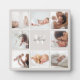 Display your baby's photo with our stylish and modern baby photo & monogram keepsake collage gray plaque. The design features eight photo grid collage to display your baby's photos. Personalize with your baby's first name and monogram.