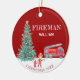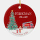 A cute red firetruck Christmas keepsake is the perfect christmas decoration theme for a firefighter Christmas gift. It features your child's custom name, custom photo and the christmas year. You can edit all of the text. This one has a christmas theme with a traditional red and white background a a gorgeous decorated christmas tree.