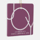 This festive Baby's First Christmas Photo Ornament is decorated with the word JOY on a purple plum background.