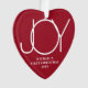 This stylish Baby's First Christmas Photo Heart-shaped Ornament features the word JOY on a maroon-red background.