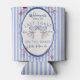 Keep the drinks cool and the vibes high with this custom “Last Toast on the Coast” can cooler — the perfect beach bachelorette party favour! Featuring chic blue-and-white stripes, wine glasses, and beach chairs with bows, this coastal-themed koozie can be personalised with the bride’s name, year, and location.