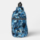 This custom backpack sling bag is shown in a blue multi colour camo print, buy as shown or add to it.