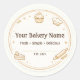 Bakery logo sticker and Bakery brand name sticker designed to give your pastry shop a professional and elegant look. This small business bakery sticker features classic baking icons like a cupcake, chef hat, and rolling pin, making it an ideal custom bakery sticker for artisanal bread shops and professional bakers. Use it as a bakery packaging sticker to add a cohesive brand touch to your boxes and bags.