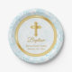 Custom Baptism in Blue, White Damask and Gold Paper Plate