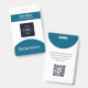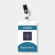 Create a fully customised business logo name badge with barcode option in a professional navy blue design. Personalise with employee name, title, company logo, and optional scan barcode for added functionality. Easy to customise fonts and layout. Ideal for employee identification, security, and events. Available with lanyard, clip, or retractable reel.