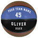 Custom Basketball Blue with Player Team Name Number. Modern and simple design in dark blue and black colours. The text is in white colour. Personalise it with your team name, player`s number, player`s name and year. A great keepsake to remember your favourite sport and a perfect gift for a basketball player, teammates, coach, your friends and family.