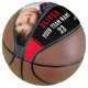 Custom Basketball with Name, Number, Team Name and Photo. Personalise it with your photo, name, team name, your team number and the year. The text is trendy white and red typography on a black background with red stripe. You can change any text on the basketball or erase it. A perfect gift for a basketball player, teammates, coach, your friends and family. Great keepsake to remember your favourite sport.