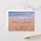 Custom "save the date" or "engagement" card with two hearts drawn in the sand and blue ocean background. Easily change to your names for your special event.