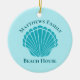 Custom Beach House Aqua Seashell Monogram Family Ceramic Ornament