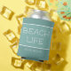 Relax on the beach with your favourite beverage with this custom Beach Life can cooler featuring lovely sea salt greens and waves detailing on back.