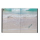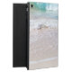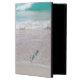 Pretty iPad Air case with built in stand, with a lovely photograph of rippling waves, on the shoreline. Aqua coloured script text, on the right side is ready to personalise for yourself or as a lovely gift idea.