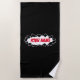 Custom beach towel gift with realistic ripped hole effect design. Personalised towel for friends, family, newly weds, mum, dad, husband, wife, bride and groom, coach, kids, boy, teen, etc. Cool Birthday gift idea for him or her. Also nice for pool party or summer vacation. Add your own name or humourous quote. Black or custom background colour.