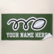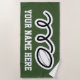 Custom beach towel gift for rugby player. Personalised towel for rugby fan, team, friends, mum, dad, coach, kids, boy, teen etc. Cool Birthday gift idea for him or her. Also nice for pool party or summer camp vacation. Letters can be spaced out evenly. Add your own name or quote. Green or custom background colour.