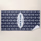 Personalised beach towel with nautical anchor pattern. Elegant navy blue and white print with quote, name or monogram letters. Cute Holiday or Birthday gift idea for him or her. Boat anchor print with custom background colour. Large size for beach or pool. Create towels for friends, family, sailor, sailing enthusiasts, kids, boat captain, dad, mum, brother, uncle, grandpa etc. Maritime ship anchor logo icon design with oval label. Anchors aweigh! Property of template.