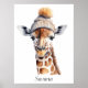 Elevate your nursery or playroom decor with the Custom Beanie Bunch Giraffe Art Poster. This high-quality print features a majestic giraffe sporting a cosy, tan knit beanie with a fluffy pom-pom, rendered in a beautiful and detailed watercolor style. The elegant profile and warm tones of the giraffe are complemented by artistic paint splatters, making it a sophisticated yet playful addition to any wall. Personalise this piece with a name, like "Savana," to create a unique and meaningful gift for baby showers, birthdays, or animal-themed rooms.