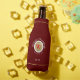 Dark red background colour with two thin golden stripes, and a circle monogram to personalise with your own name and initials. For any purposes and occasions... cool to promote a beer party, bar, business...